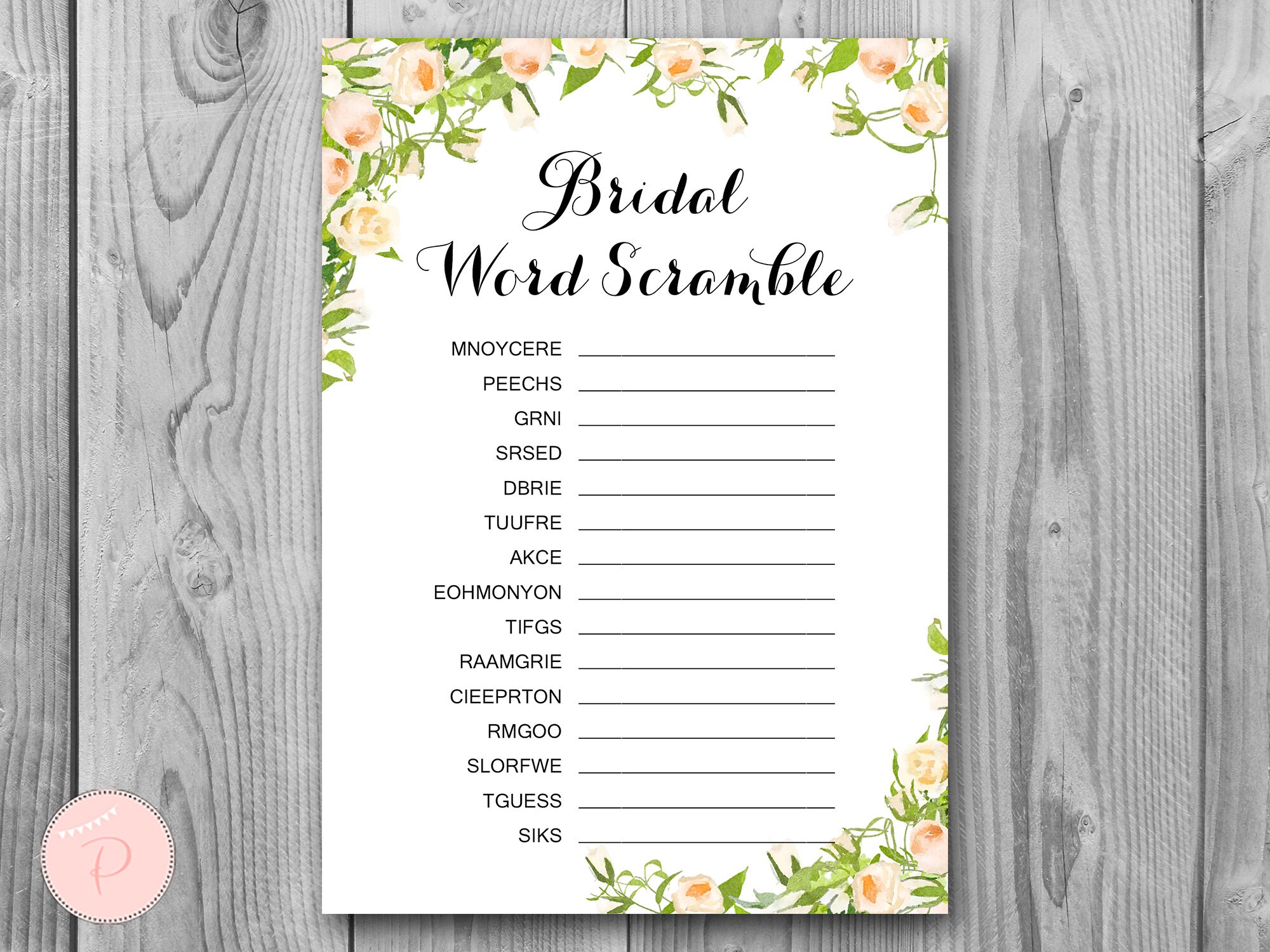 Peonies Bridal Word Scramble Bridal Shower Game Unscramble Etsy Ireland
