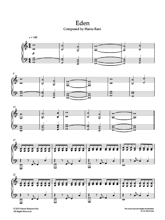 Eden Klavier Solo Pdf Noten Von Hania Rani In C Dur Fbd 44644